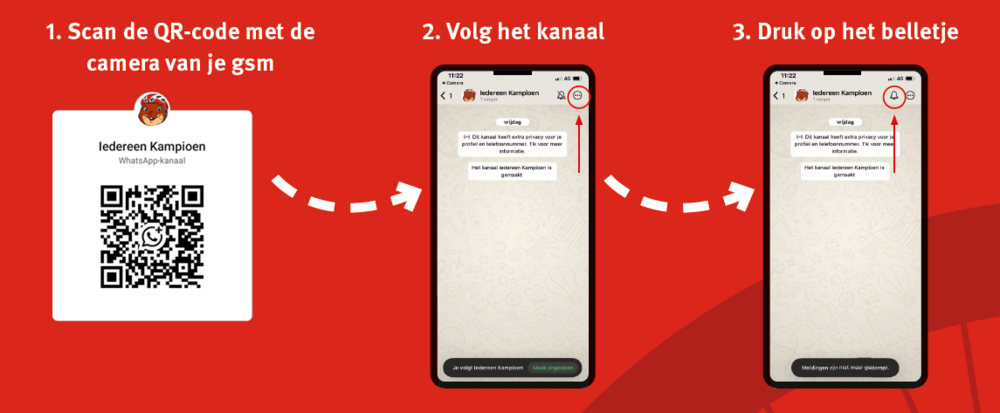 Ben jij graag op de hoogte van alles wat er te beleven valt? Sluit je aan op het WhatsApp kanaal Iedereen Kampioen. We sturen tijdig een herinnering van wat er te doen is. Wanneer er activiteiten bijkomen, kondigen we die ook via deze weg aan. Op de dag van het BK geven we via dit kanaal zoveel mogelijk extra info.